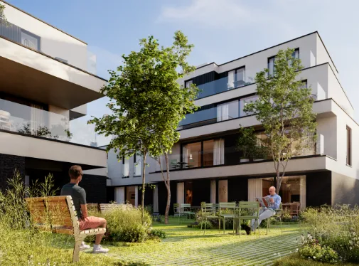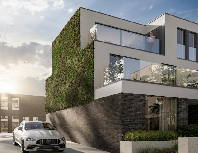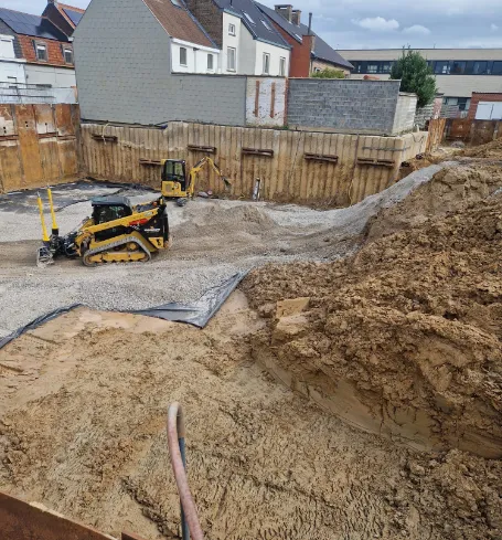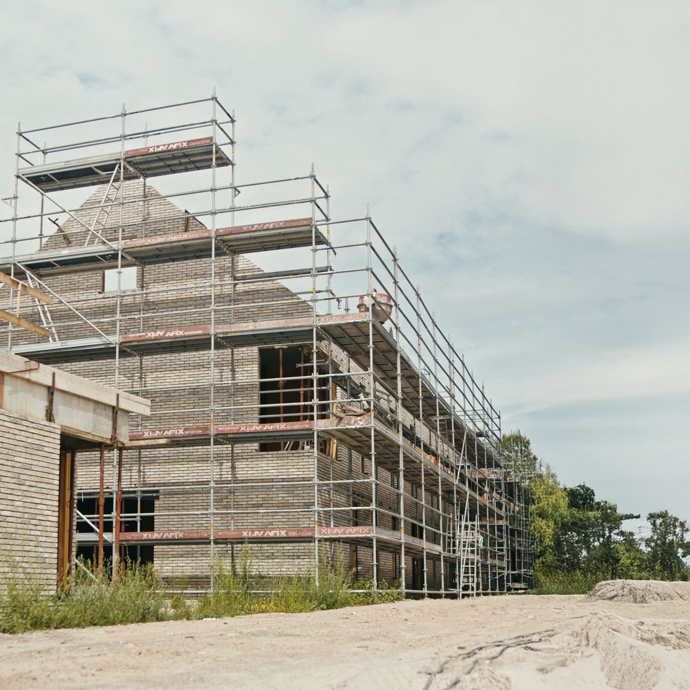 Op de foto zie je hoe de ruwbouw ondertussen volledig vorm heeft gekregen en de ramen al geplaatst zijn. Een mooie stap vooruit: het gebouw krijgt steeds meer zijn definitieve uitstraling. We kijken uit naar de volgende fase van de afwerking.